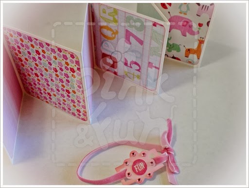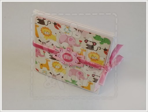 Neste formato (em acordeon) que se segura em pé, este "mini-álbum de bolso" pode também servir de moldura com espaço para várias fotos.